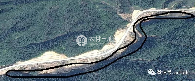 這是較早的衛(wèi)星圖片,山谷長度為1.3公里,整個山谷全程通4.5米寬水泥路,白色的線條為新開的省道。省道對面是已經(jīng)砍伐完畢的林地數(shù)百畝,可以養(yǎng)殖土雞。本圖片只畫了所有土地的一半