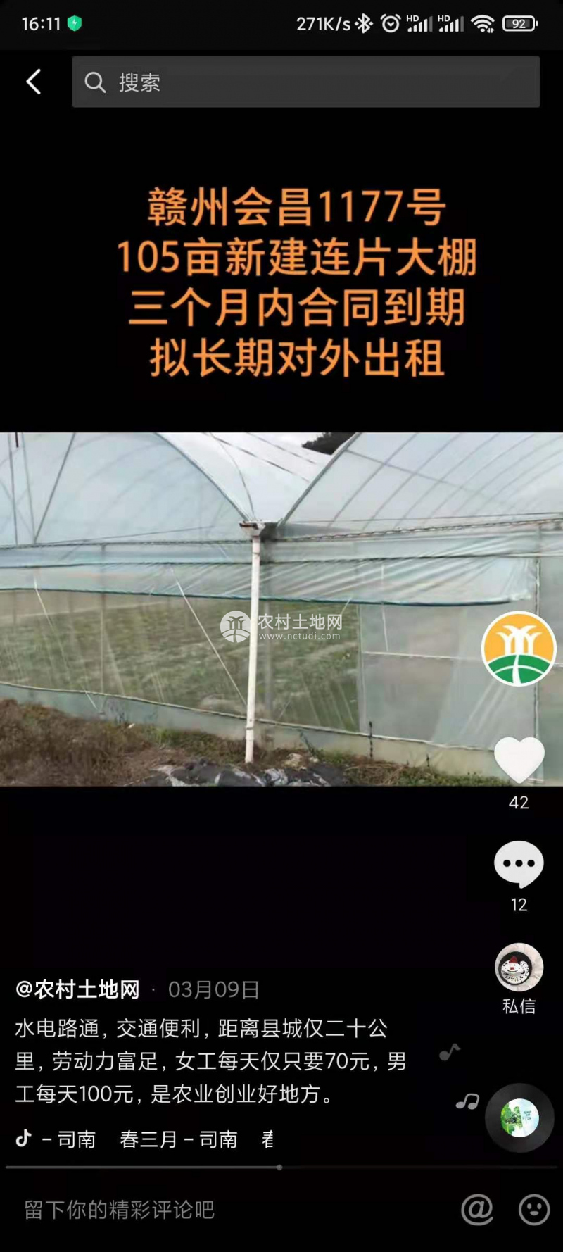 HC179#會昌縣50畝大棚對外出租