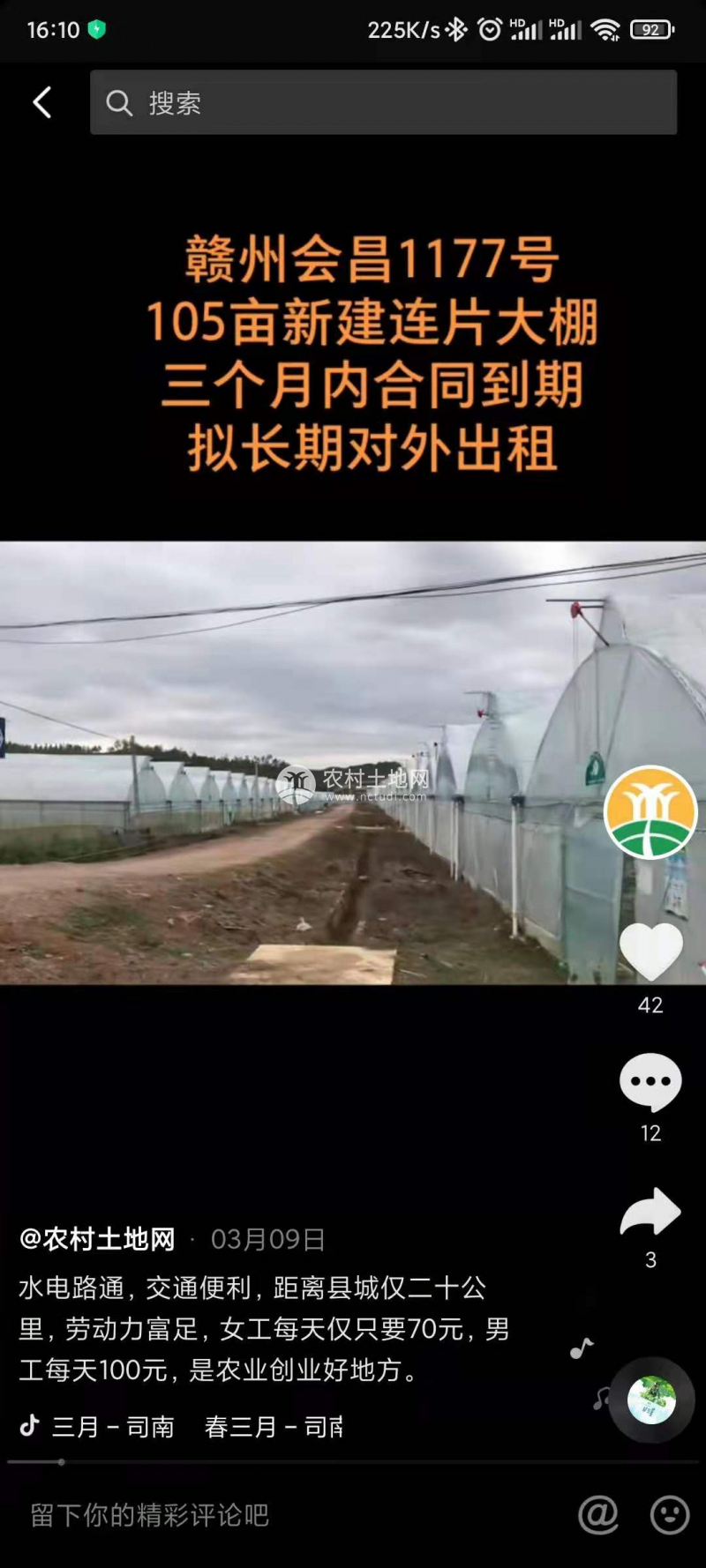HC182#會昌縣連片50畝大棚出租
