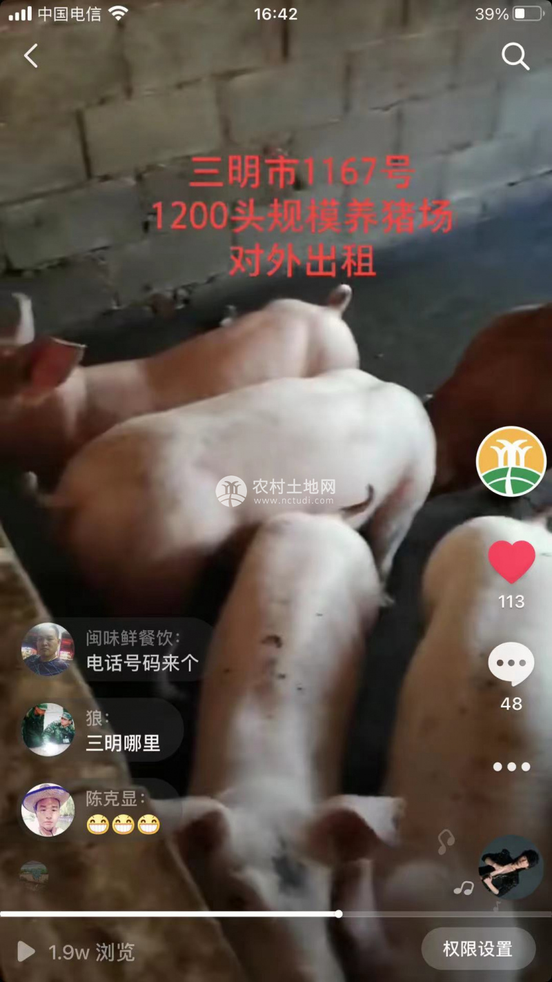 三明市2091號豬場 繁育250頭母豬 存欄2200頭生豬 年出欄4500頭 證照環(huán)評齊全